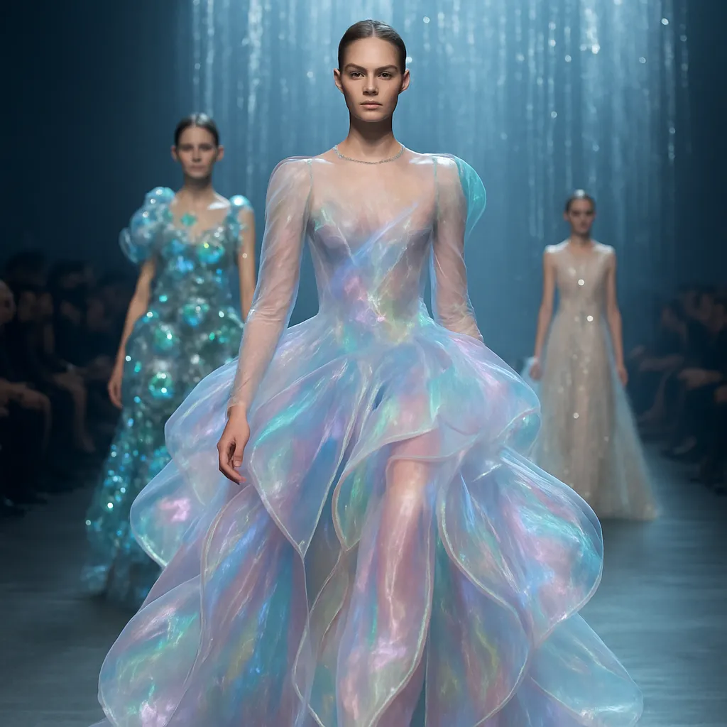 W efekcie podziwiamy ubrania, które płynnie transformują się w zależności od kąta padania światła i kąta obserwacji. Ta symbioza mody i technologii otwiera przed projektantami nieograniczone możliwości artystycznej ekspresji, a publiczność zostaje zaproszona do udziału w widowisku, gdzie granice między rzeczywistością a cyfrową iluzją się zatracają.